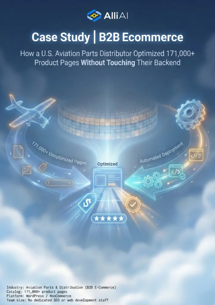 How a U.S. aviation parts distributor turned a mathematically impossible SEO project, 8,500 to 14,250 hours of manual work into an automated deployment that covered every product page in their catalog.